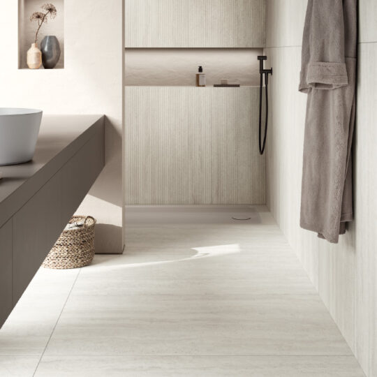 La Fenice reinterpreta il travertino vein-cut con la collezione Il Travertino, che unisce l’eleganza striata della pietra naturale alle performance del gres porcellanato. Tre cromie e due formati rettificati, completati da decorazioni essenziali, definiscono una proposta sobria e contemporanea.