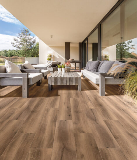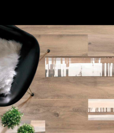 Hollywood di La Fenice interpreta le calde imperfezioni del legno in gres porcellanato.